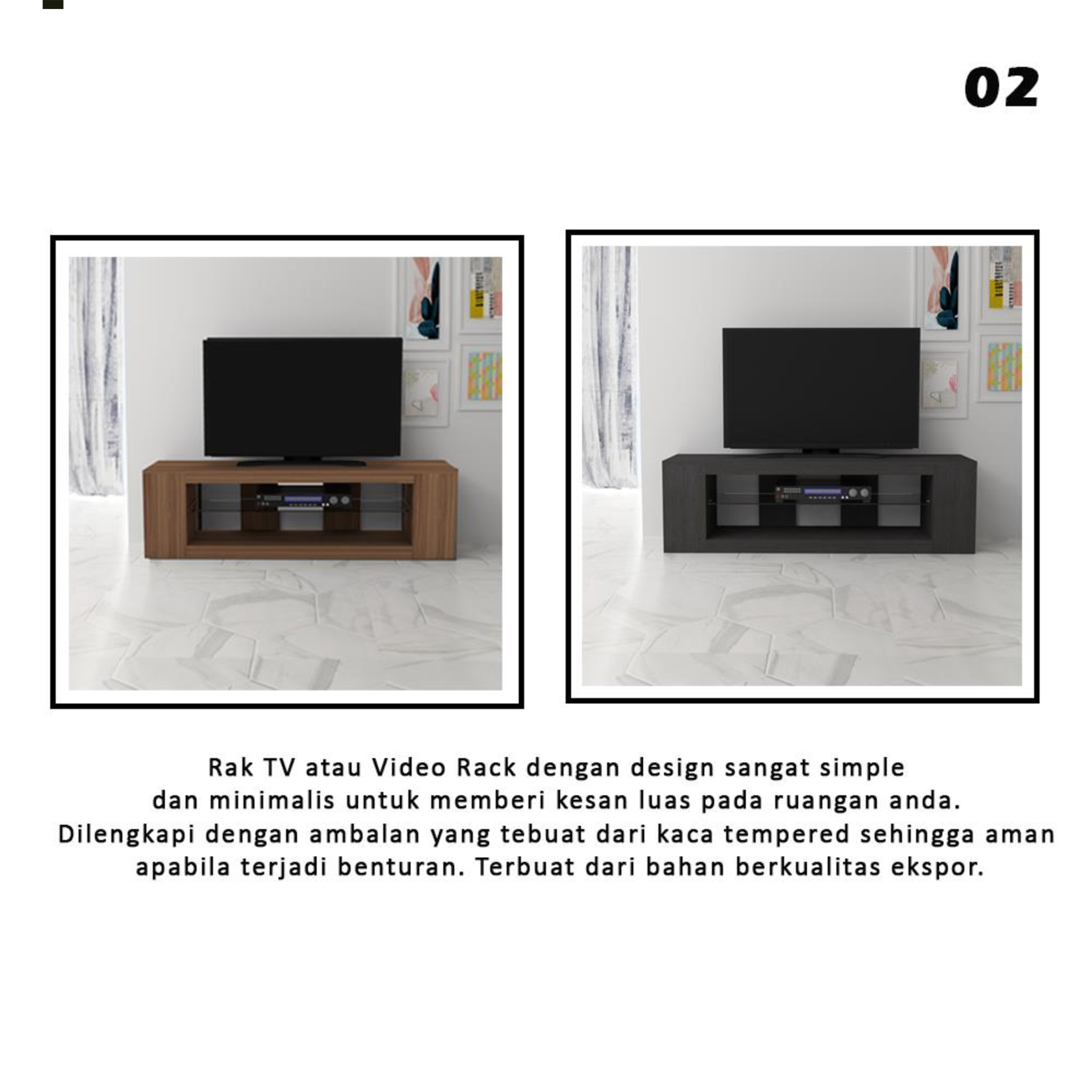 Rak TV atau Video Rack ini di design sangat simple dan minimalis untuk memberi kesan luas pada ruangan anda. Dilengkapi dengan ambalan yang tebuat dari kaca tempered sehingga aman apabila terjadi benturan.